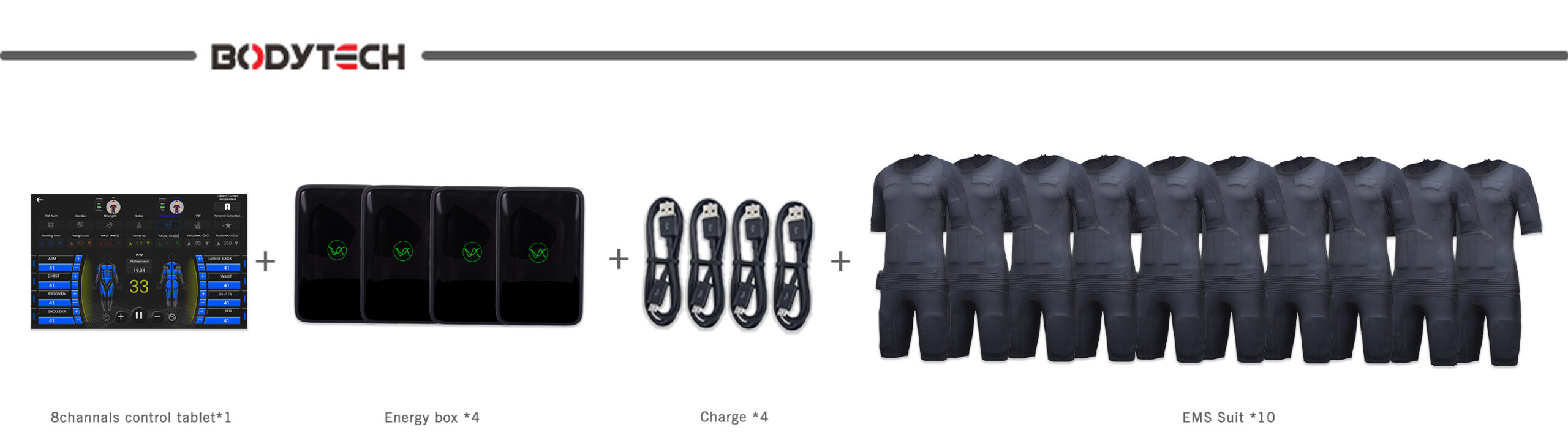 ♦ The ems full body suit contains 20 electrodes, allowing us to exercise 8 muscle groups at the same time.