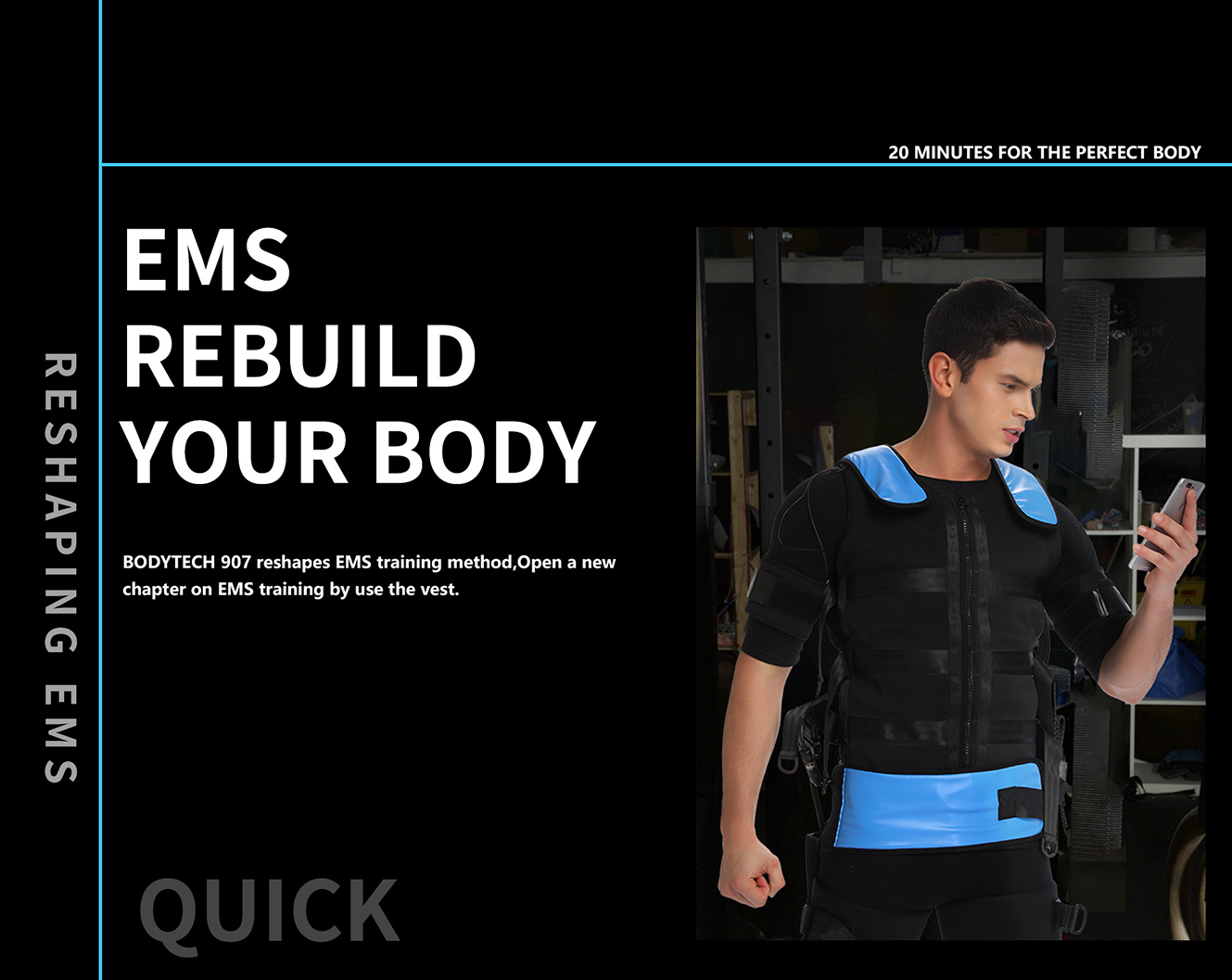 ♦ The EMS training suit contains 20 electrodes, covering 90% of the muscles of the body.