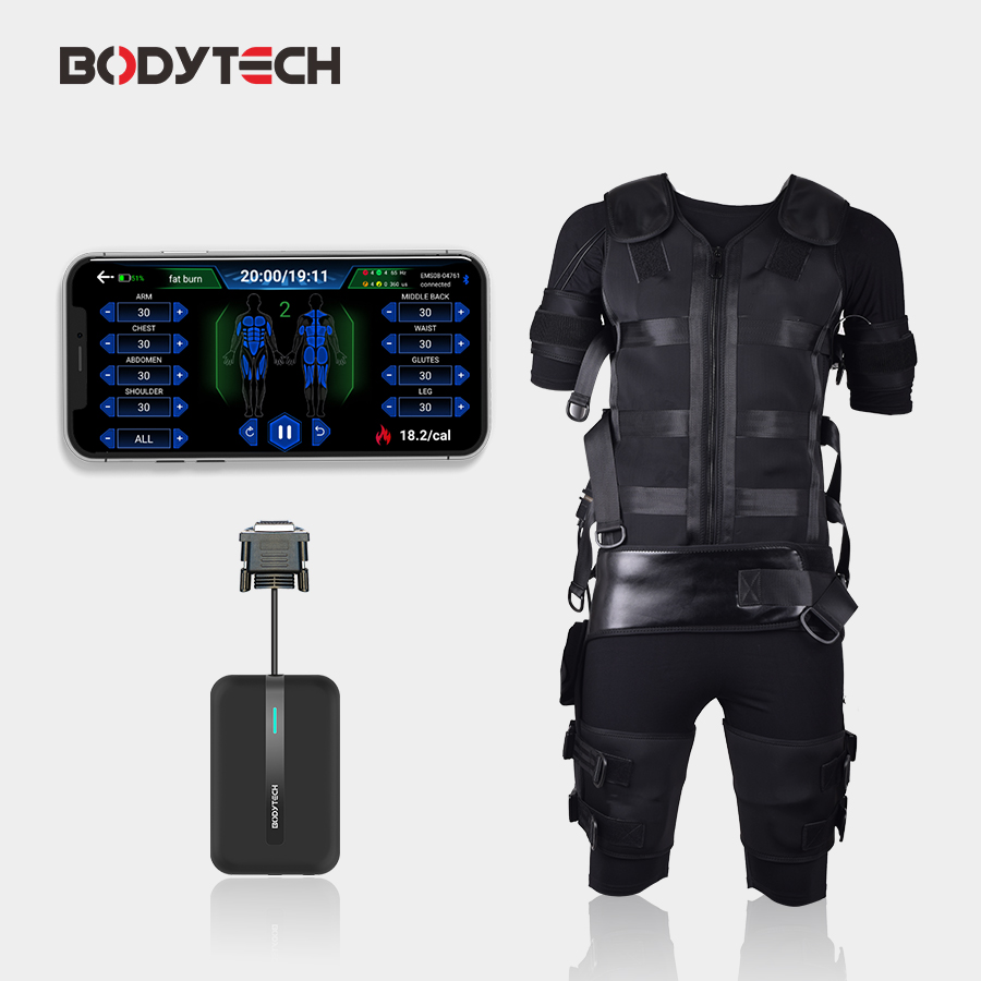 • Lightweight antibacterial suit. The EMS workout suit is durable and stretchy, and fits the body perfectly.